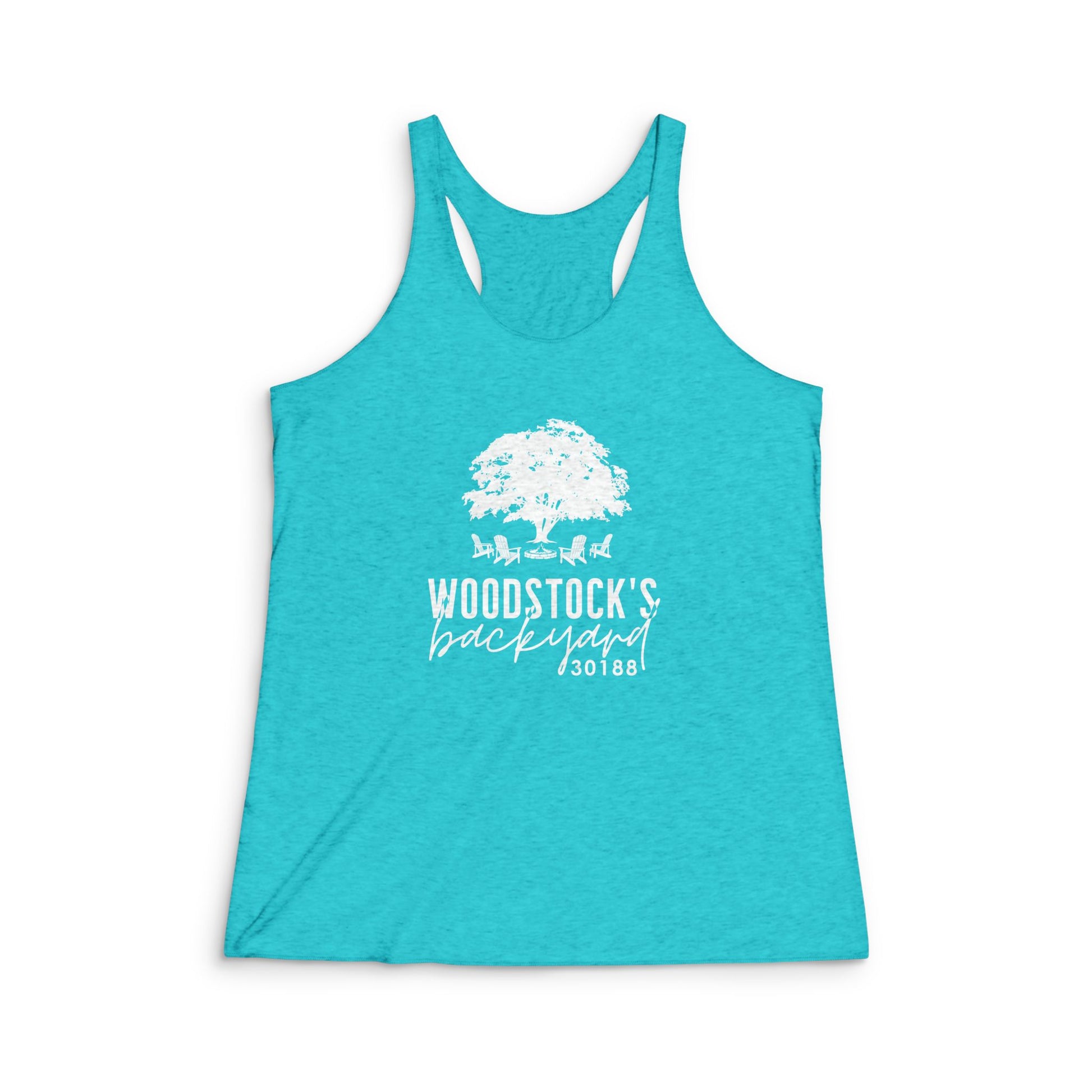 Lightweight and drapey, this racerback tank brings a relaxed, nostalgic vibe to sunny days and Woodstock's backyard gatherings. The soft tri-blend fabric moves with you and settles into a flattering slim silhouette, while the distressed white Woodstock graphic — a sprawling oak with lawn chairs beneath — evokes slow afternoons, live music, and the easy conversation that comes with old friends. The racerback cut keeps shoulders free and the overlock binding adds a subtle, lived-in edge that fits right into a bohemian, music-minded wardrobe.